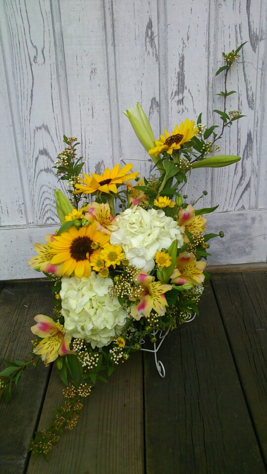 今月は、ワイヤーの容器にひまわりを♪