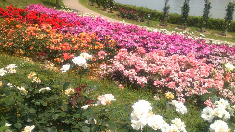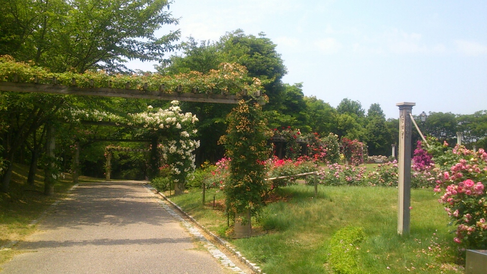 園内をおさんぽして、キレイに咲くバラ園発見!