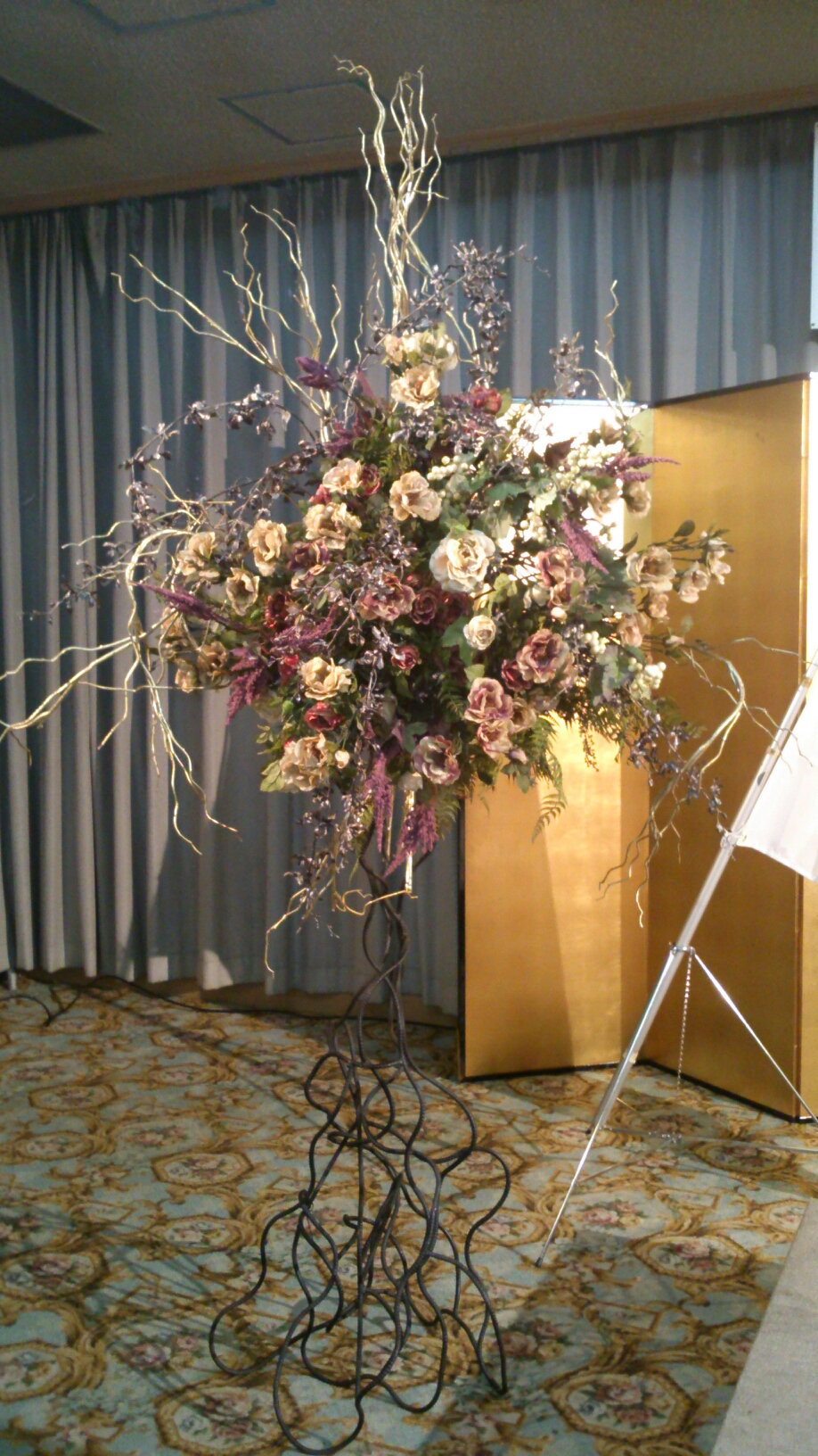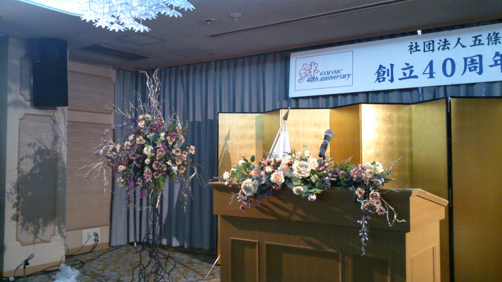 式典会場の壇上と、演台の前にレンタルでアレンジをお届けしてきました。