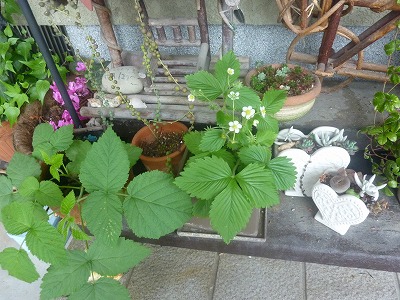 ワイルドストロベリー(右)と、ラズベリー(左)。今年はどれだけ実るかな♪