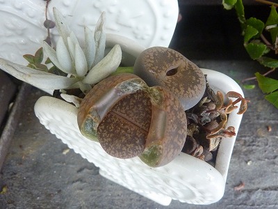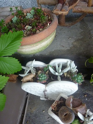 去年の多肉の寄せ植えレッスンで我が家にやってきたんだけど。
